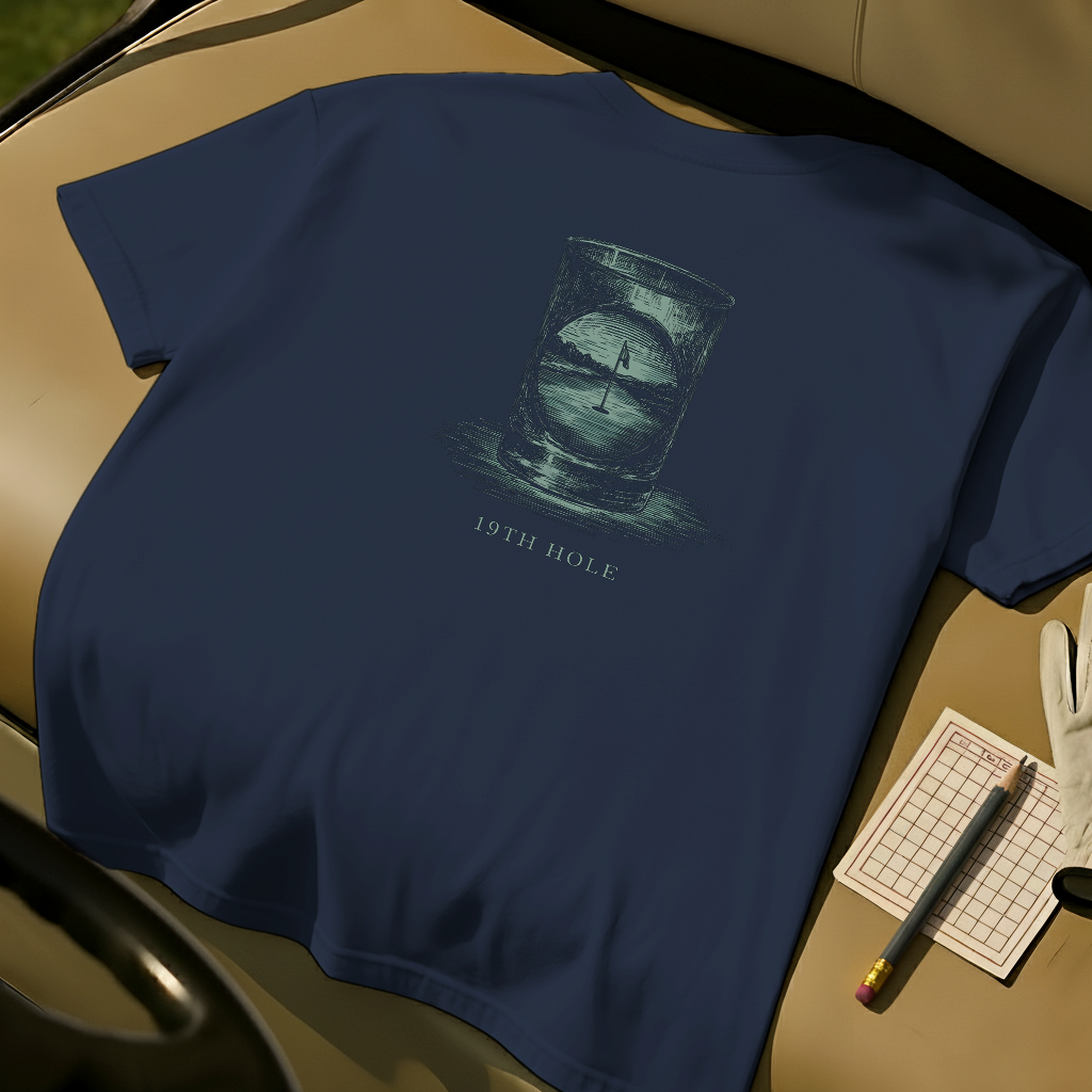 The 19th Hole isn’t on the scorecard — it’s where the stories begin. This vintage-inspired design captures the quiet satisfaction of a round well played, featuring an etched whiskey glass with a flag reflected inside, symbolizing golf’s most iconic after-round ritual. Refined, understated, and effortlessly cool, it’s made for players who appreciate the game both on the course and long after the final putt drops.