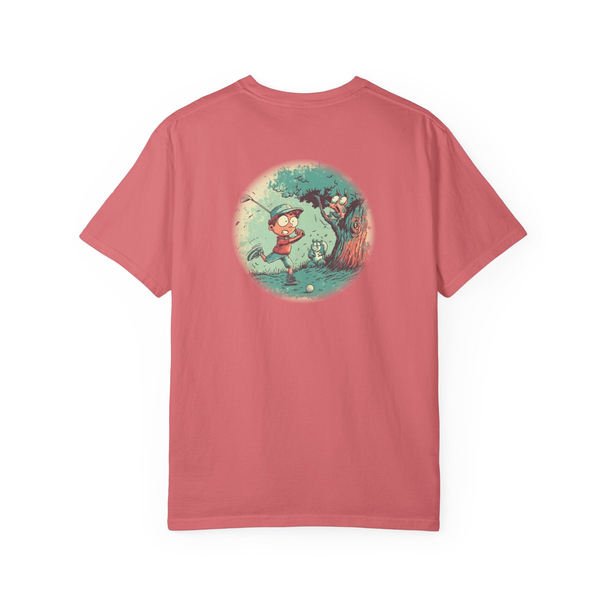 Just when this golfer thought it was a clean shot, the local squirrels had other plans from the treeline. A cheeky cartoon tee that brings woodland mischief right onto the fairway.