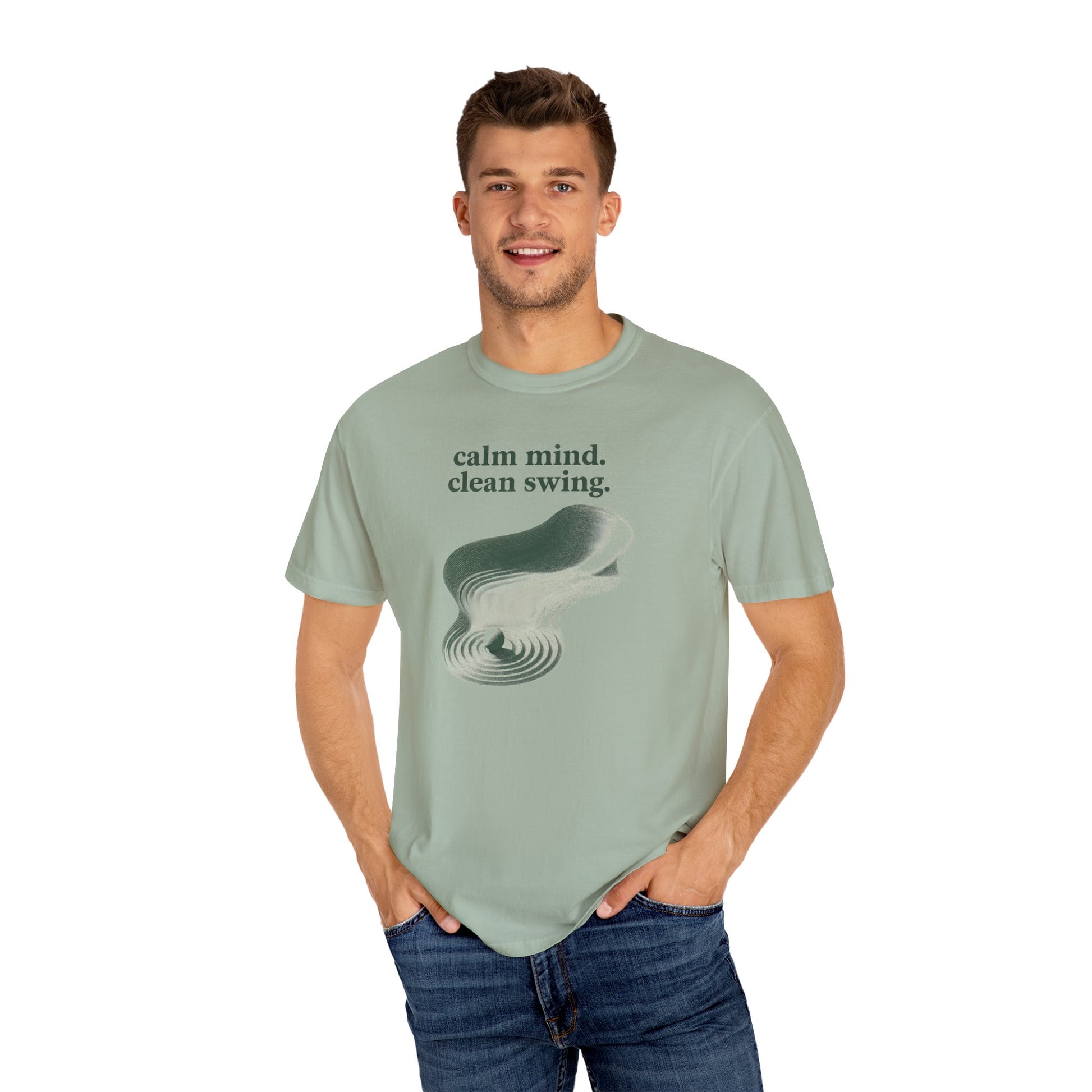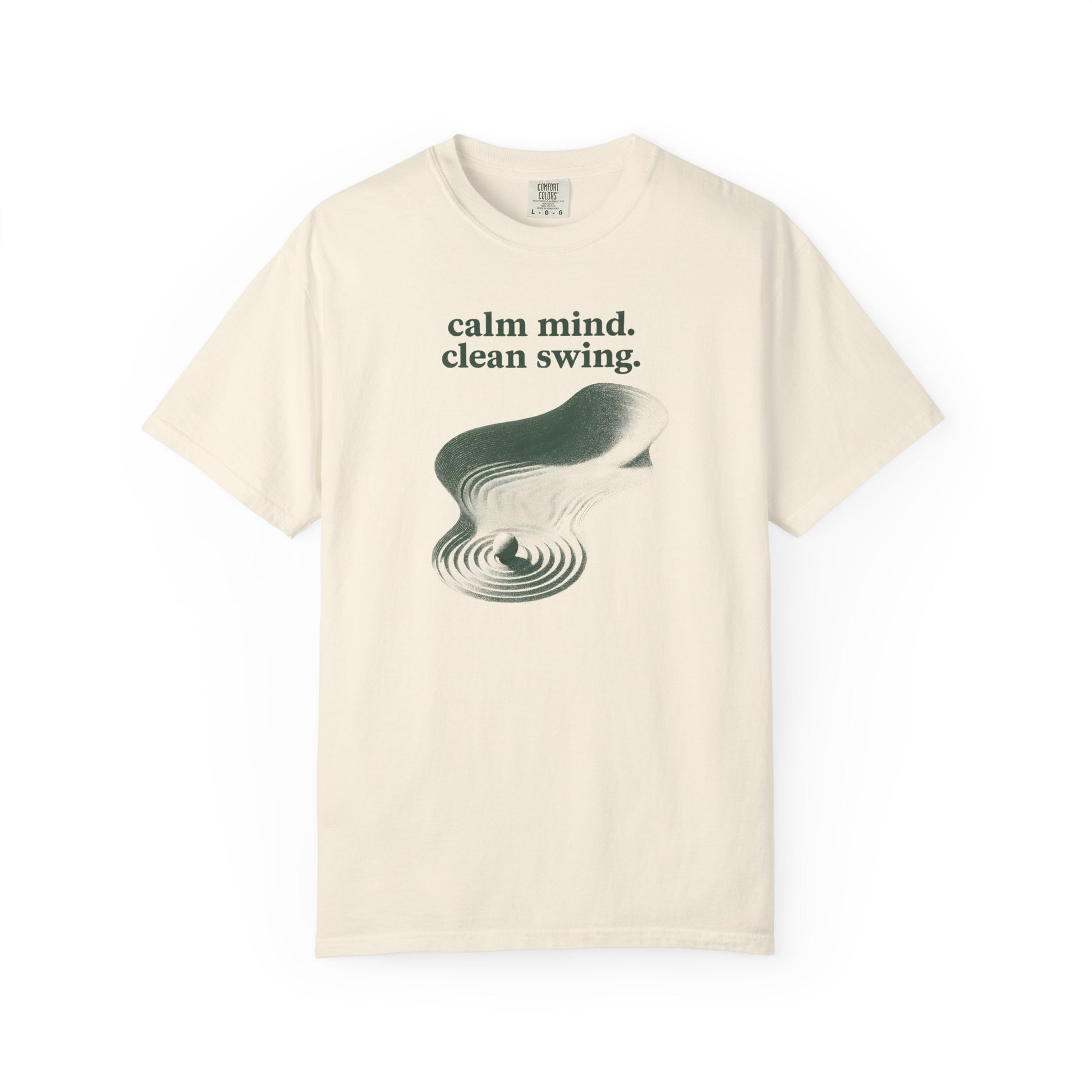 Golf is as much mental as it is physical. The Calm Mind. Clean Swing. tee blends minimalist design with a zen-inspired graphic, reminding players that focus and flow lead to better shots. A sleek, modern look for golfers who value clarity on and off the course.