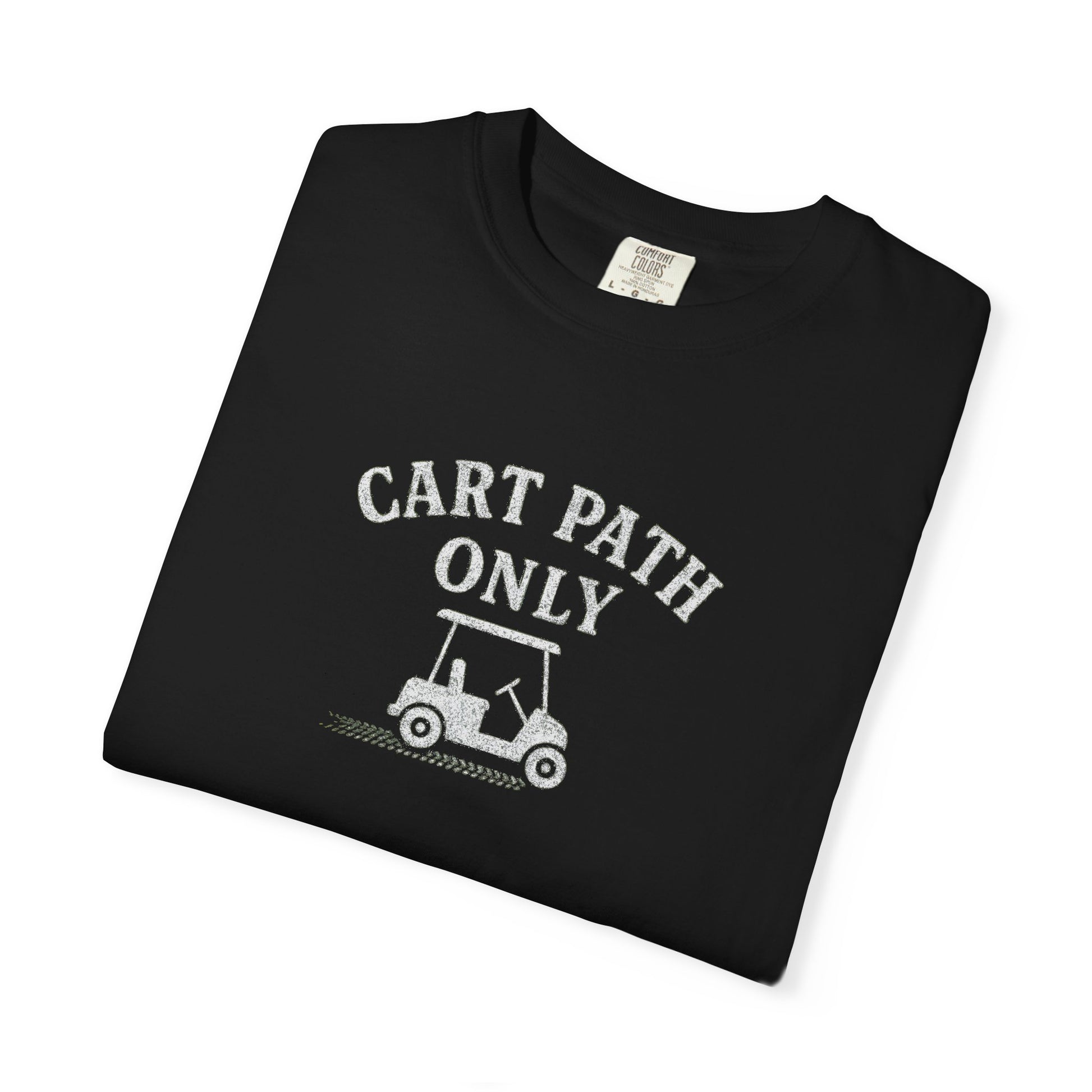 Stay on course in style with the Cart Path Only tee. Featuring a clean graphic of a golf cart and bold arched text, this shirt is perfect for golfers who know the struggle of restricted rounds. Comfortable and classic, it’s a fun nod to golf etiquette and the little rules that shape the game.
