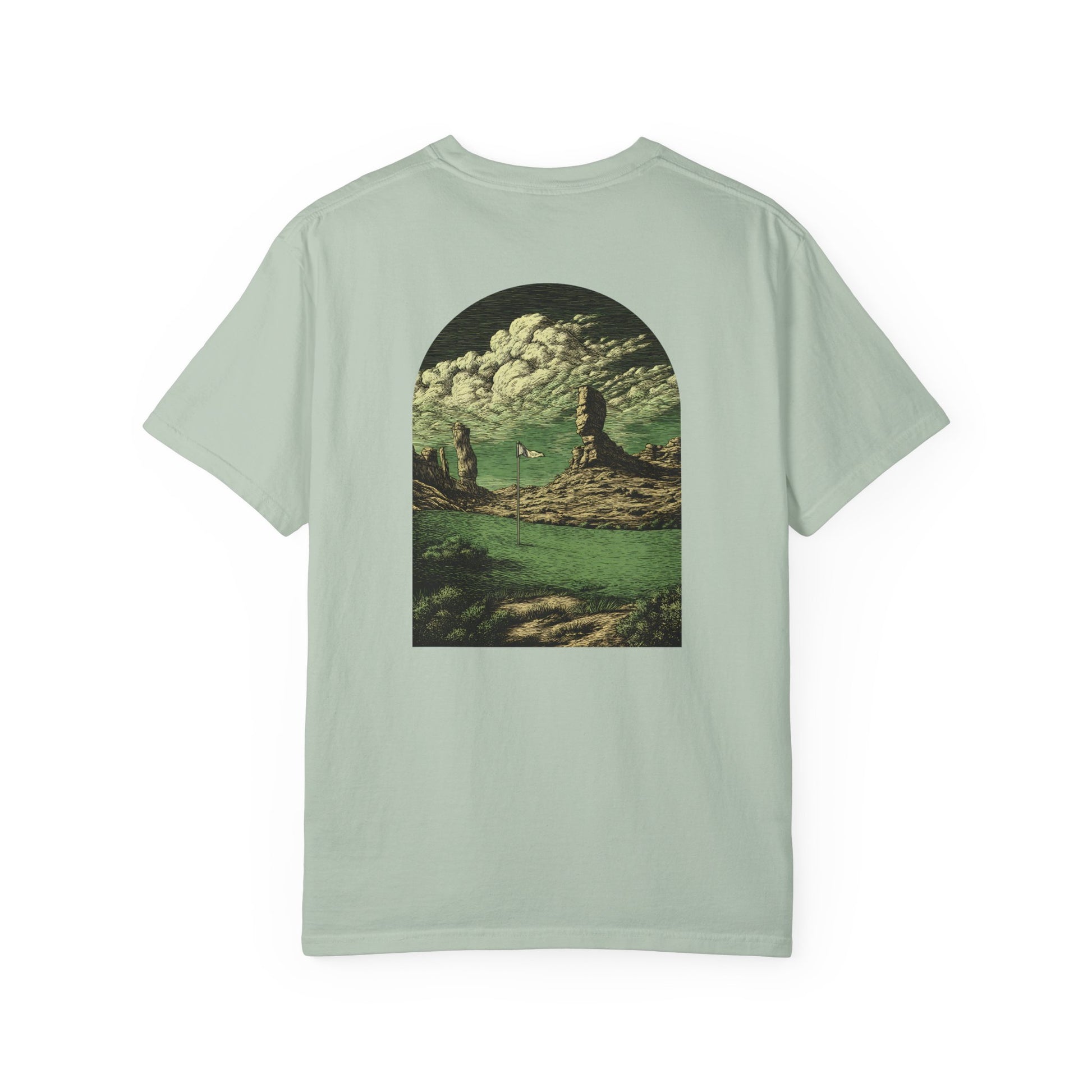 Rolling dunes and rugged sand define the Duneside Shot tee. With vintage hand-drawn details, this design embodies the spirit of golf’s toughest lies and the beauty of desert landscapes.