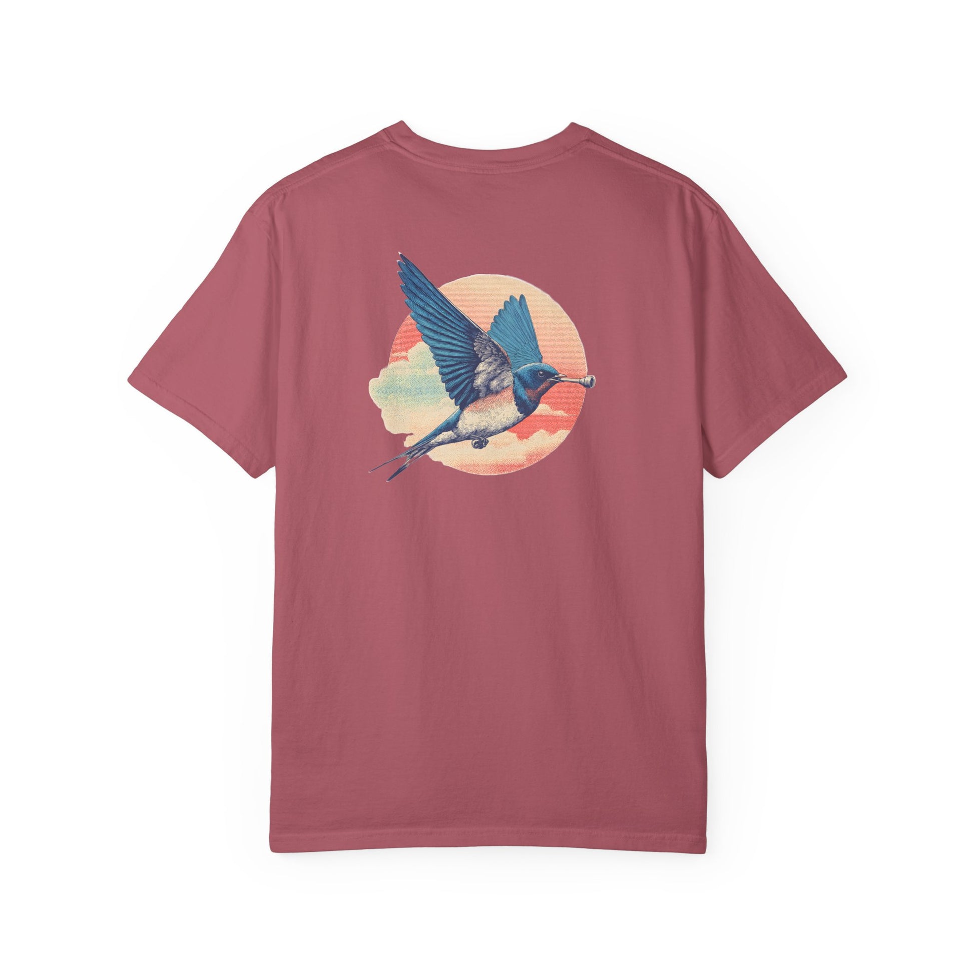 This bold design features a swallow in mid-flight, clutching a golf tee as it soars across a sun-soaked retro backdrop. With its vintage halftone texture and vibrant colors, it captures freedom, style, and a love for the game all at once. A standout piece for golfers who want something artistic and original.
