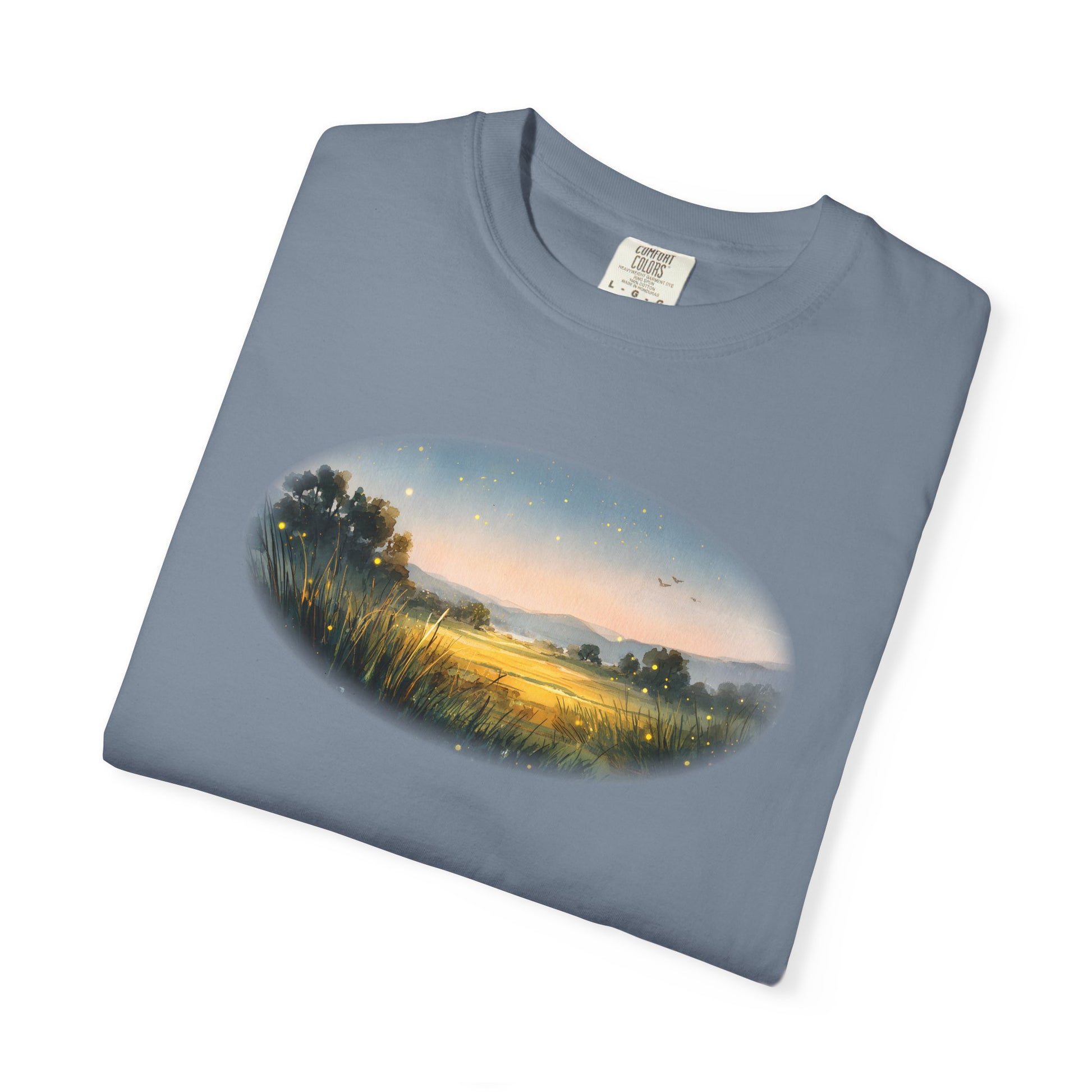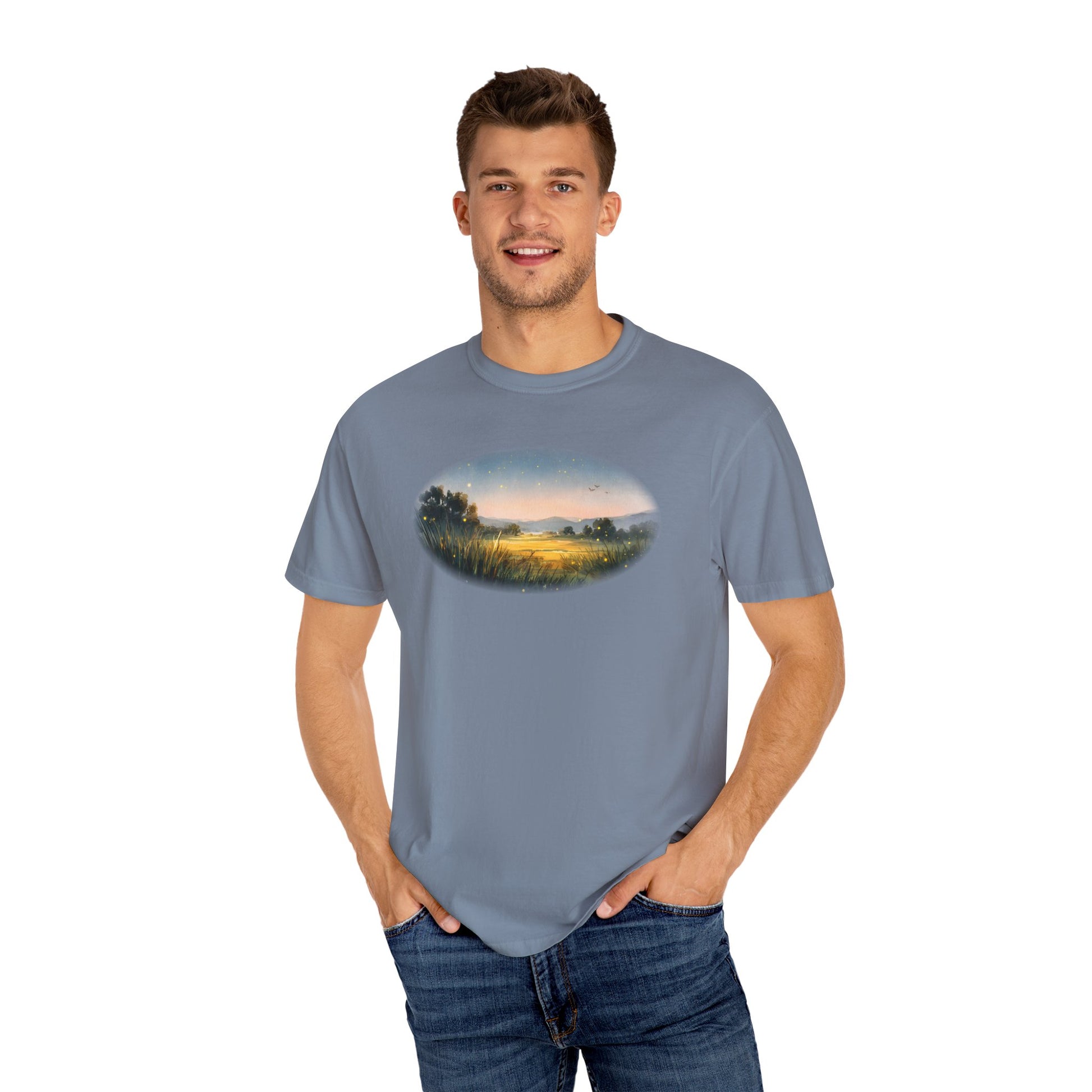 Soft twilight, glowing fireflies, and a course bathed in golden light — the Firefly Fairway tee captures the magic of golf after dusk. With a dreamy oil-painted finish, this design celebrates the quiet beauty of the game when the world slows down and the night begins to shine.