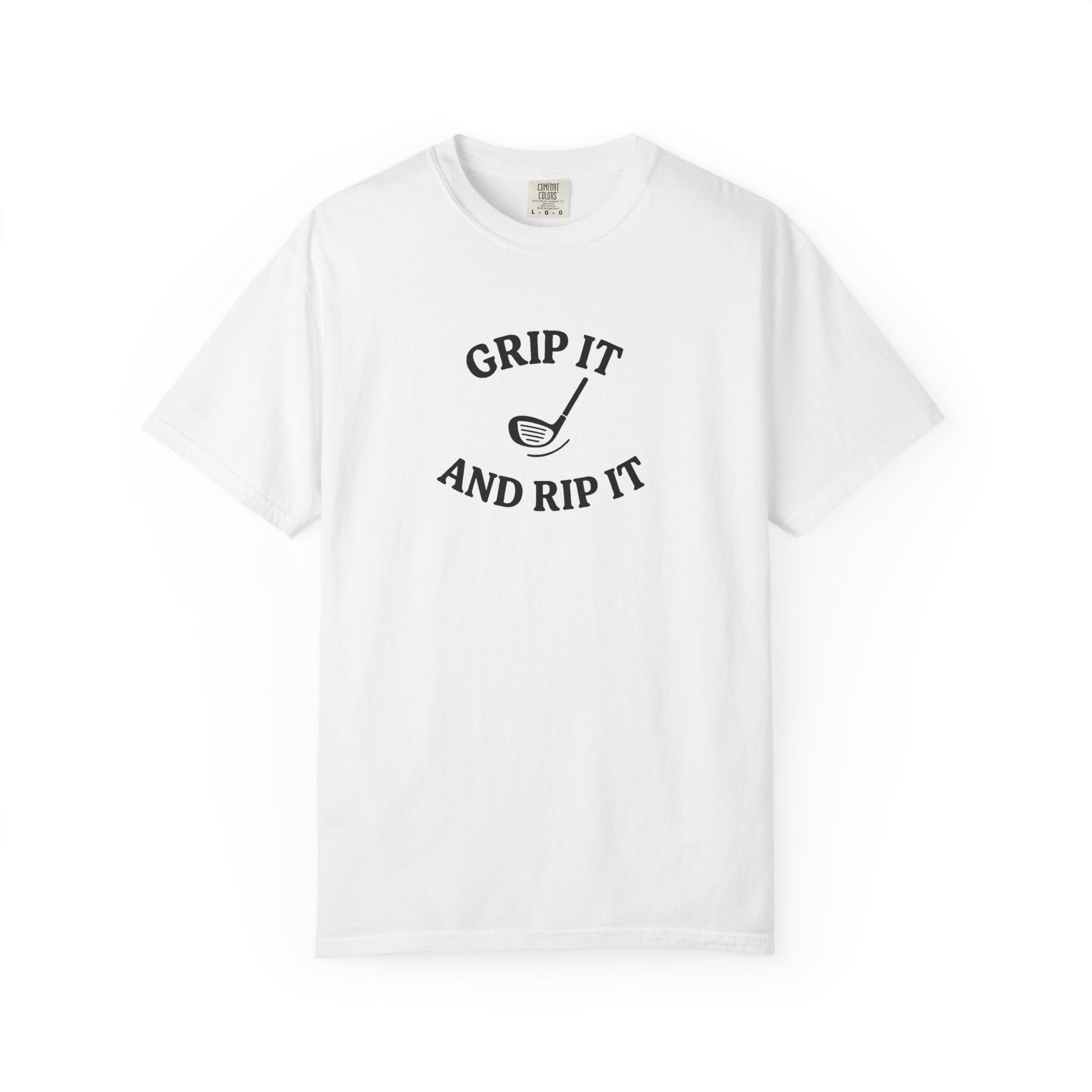 The Grip It and Rip It tee is a bold statement for golfers who play with power and confidence. Featuring a clean minimalist design with a golf club graphic, it’s perfect for anyone who loves to swing hard and let it fly. Printed on a premium Comfort Colors® 1717, this shirt is soft, durable, and built for both the driving range and post-round hangs.