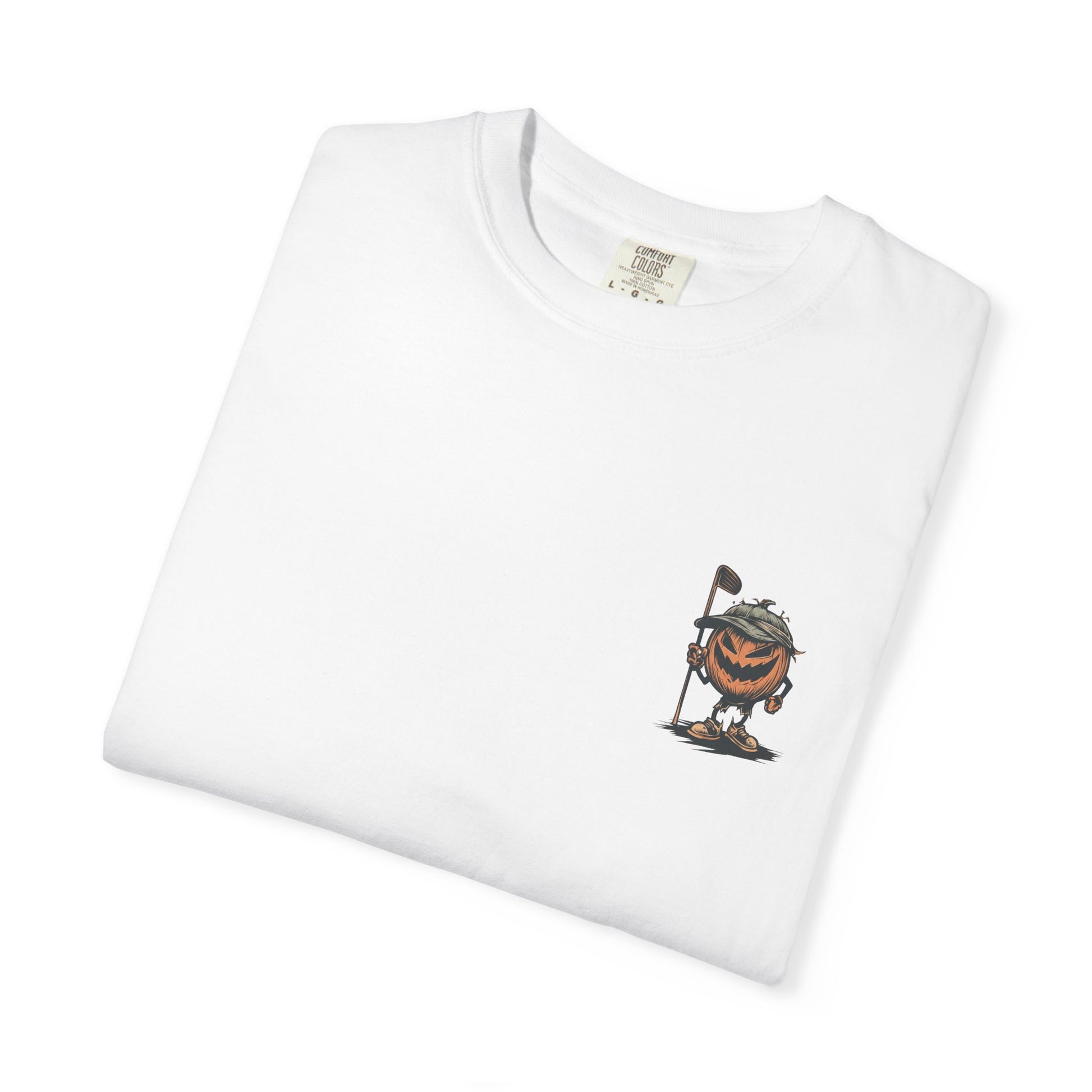 Step onto the fairway after dark with the sinister charm of Jack-O-Driver. This design features a grinning jack-o-lantern golfer, teeing off under a crescent moon with eerie trees framing the scene. Equal parts spooky and playful, it’s the perfect blend of Halloween spirit and golf obsession—built for those who never fear a haunted slice.