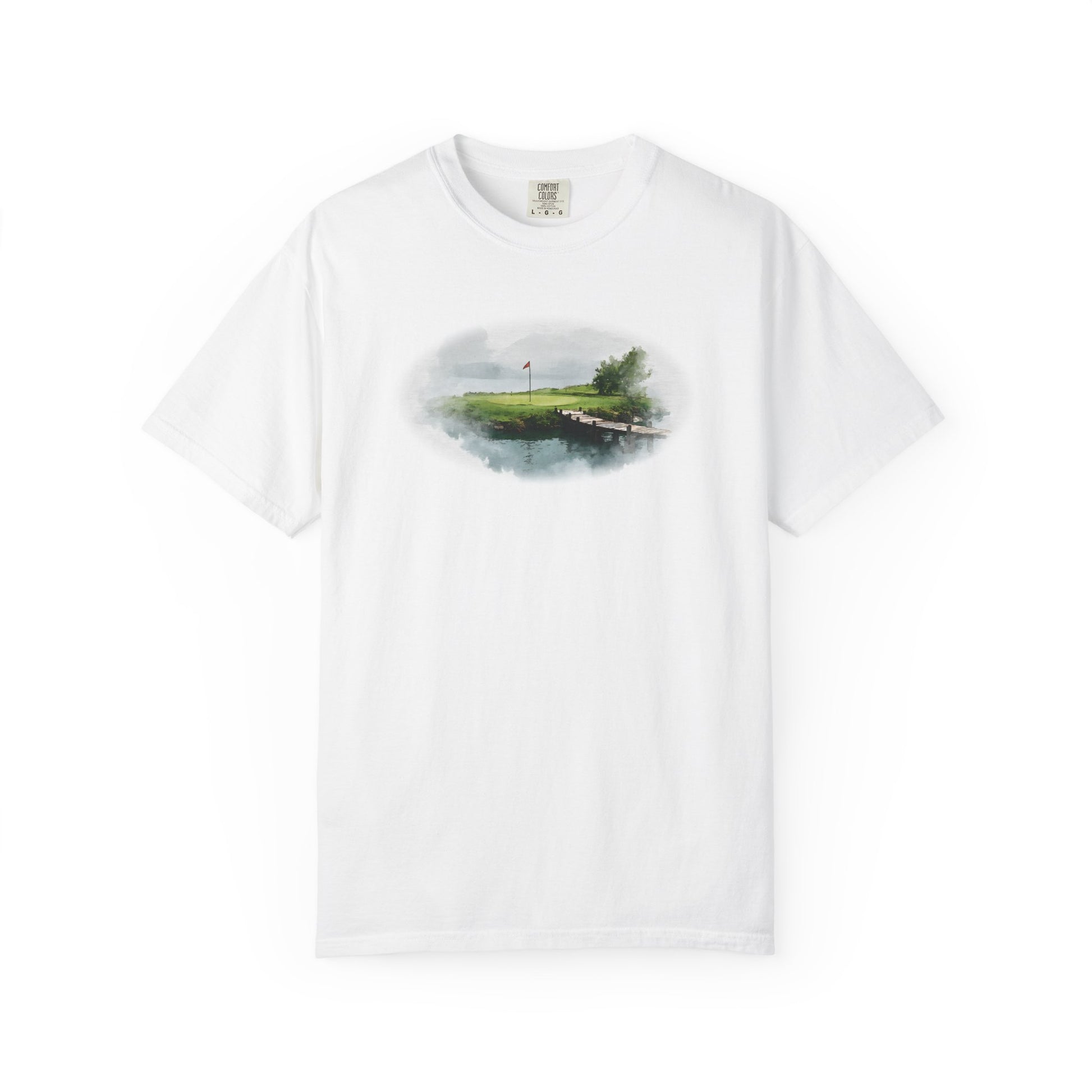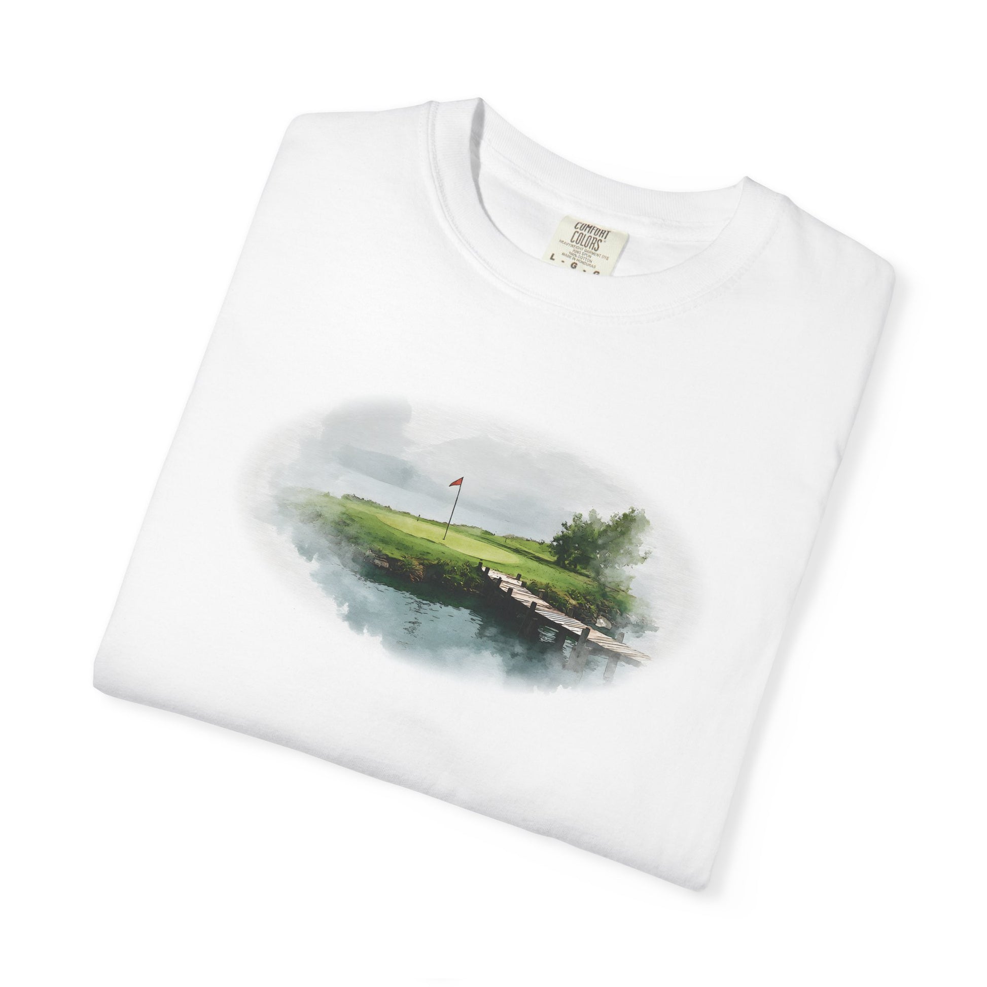 Tranquility meets challenge at Lagoon’s Edge. This watercolor-inspired design captures the calm beauty of a green bordered by still waters and a wooden bridge, blending artful detail with the quiet spirit of golf. A refined piece for players who find peace in every round.