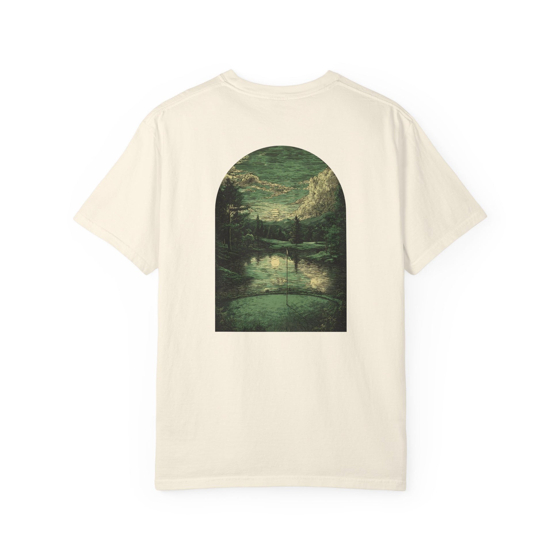 Peaceful and timeless, the Lone Pine Green tee captures a single putting surface nestled beside a towering pine. This design celebrates the quiet beauty of golf’s most tranquil settings.