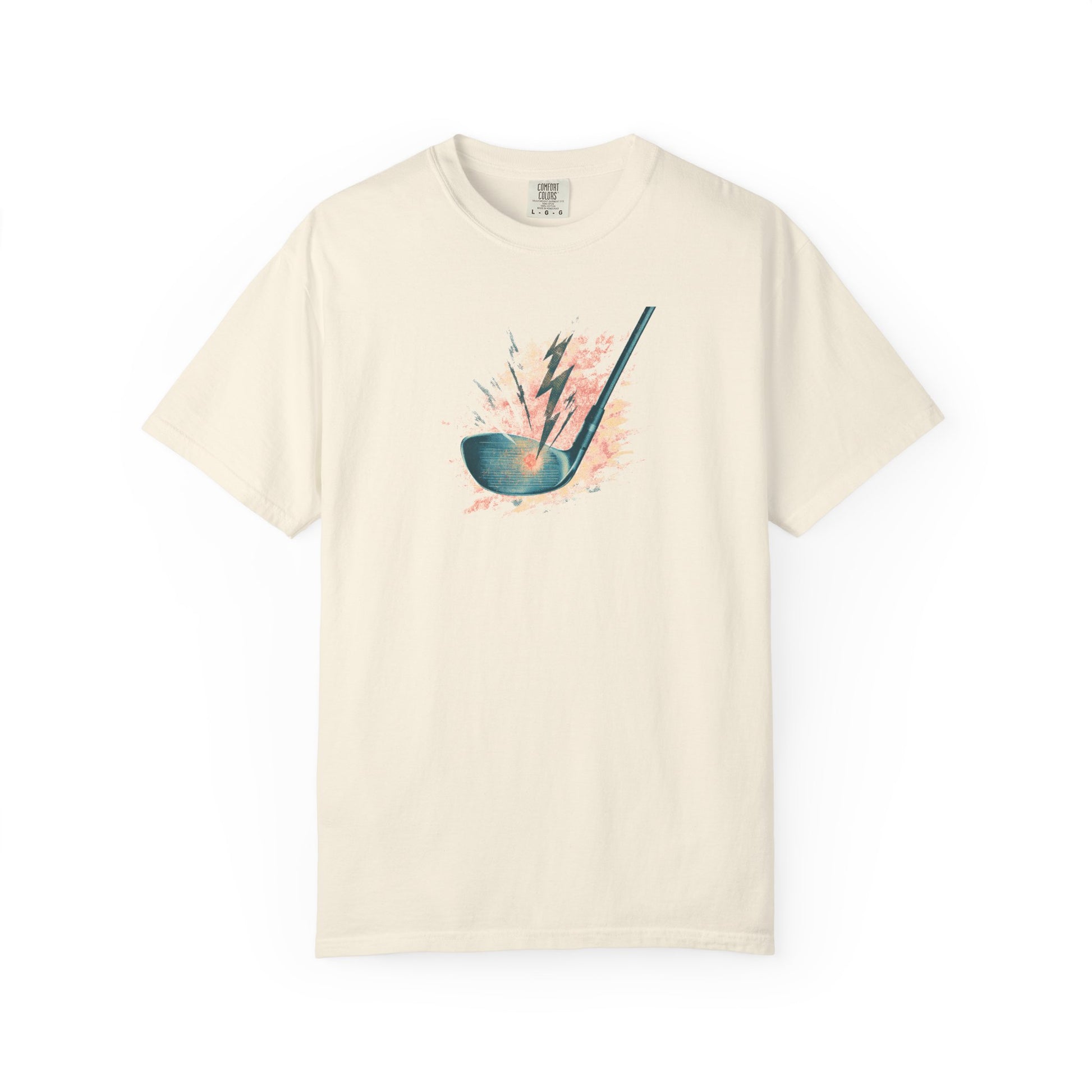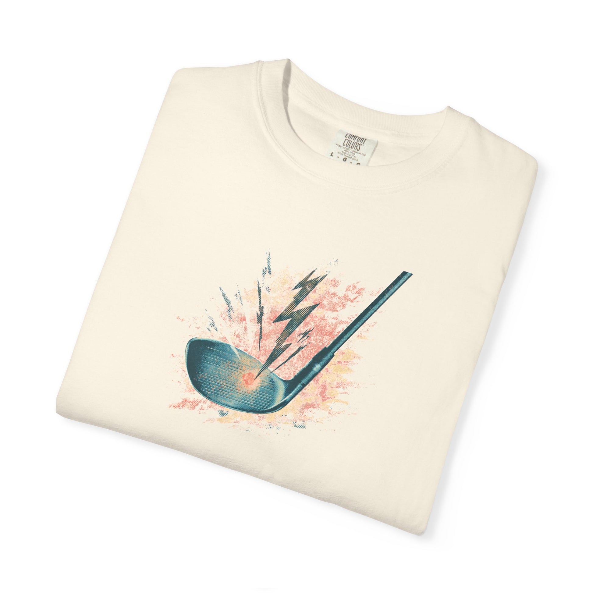 A bolt of lightning explodes off the clubface, capturing the raw energy of a perfect hit. With its retro halftone textures and electric flair, this design is made for golfers who play with intensity and impact.