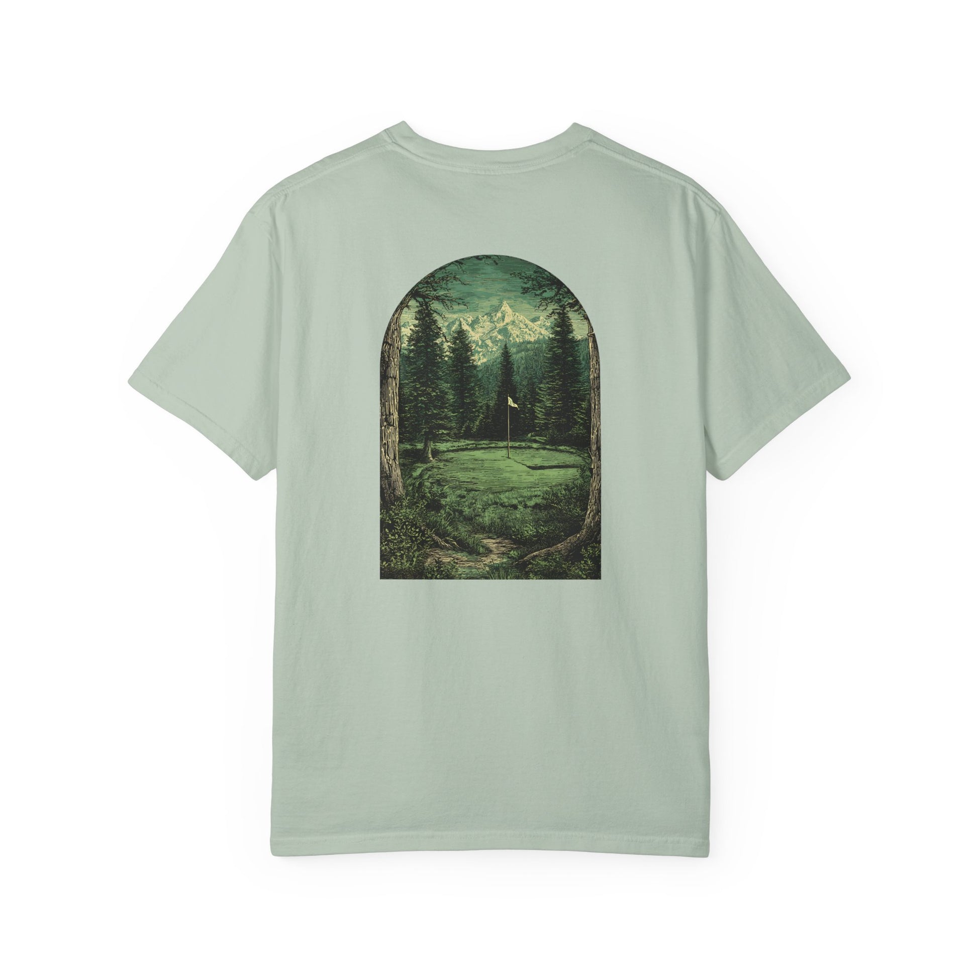 Towering trees frame the Redwood Tee, a design that captures the power and quiet of woodland golf. Illustrated with vintage texture, it’s perfect for golfers who feel at home in the forest.