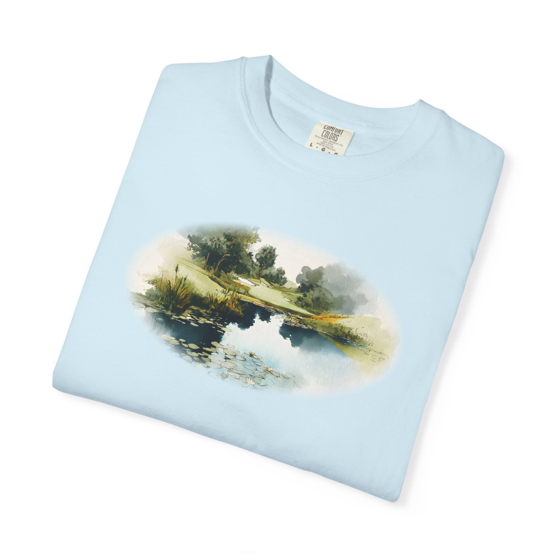 Still waters and quiet fairways meet in the Reflections at Rest tee. With its oil-painted design of mirrored trees and calm skies, this piece captures golf’s most peaceful moments — where the game slows down and the scenery takes over.