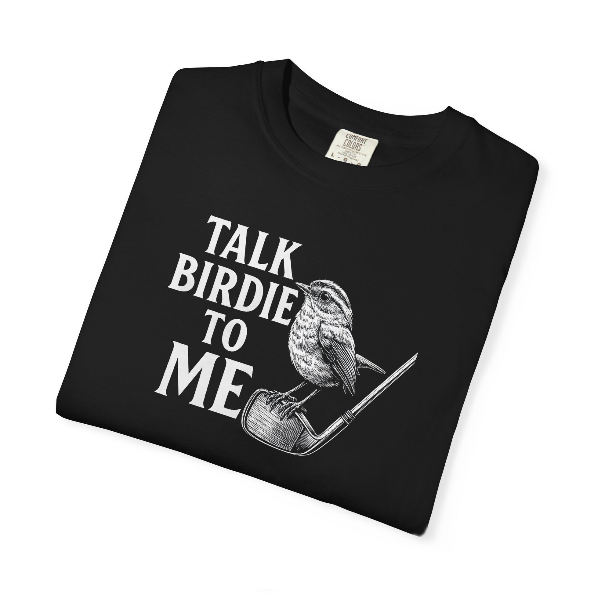 A little golf talk never hurt anyone. The Talk Birdie to Me tee pairs clever wordplay with a vintage line-art bird and club design. Perfect for golfers chasing birdies on the scorecard — and a few laughs in the clubhouse.