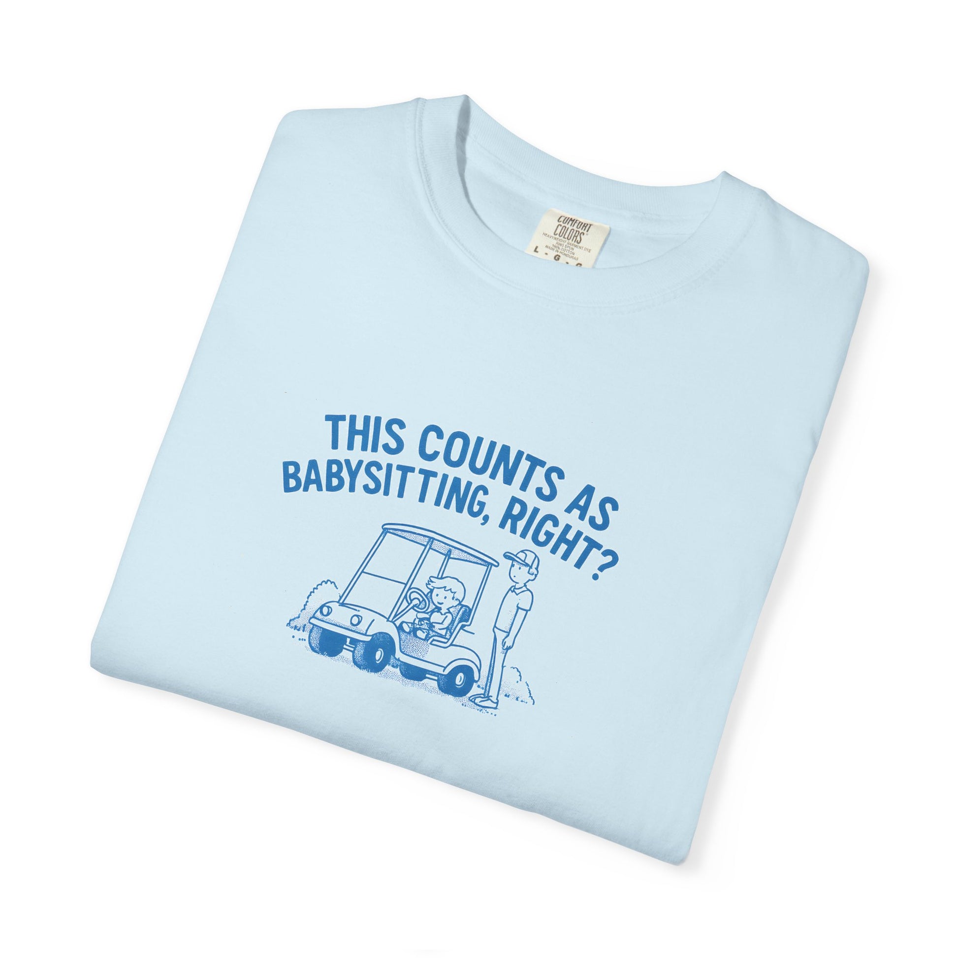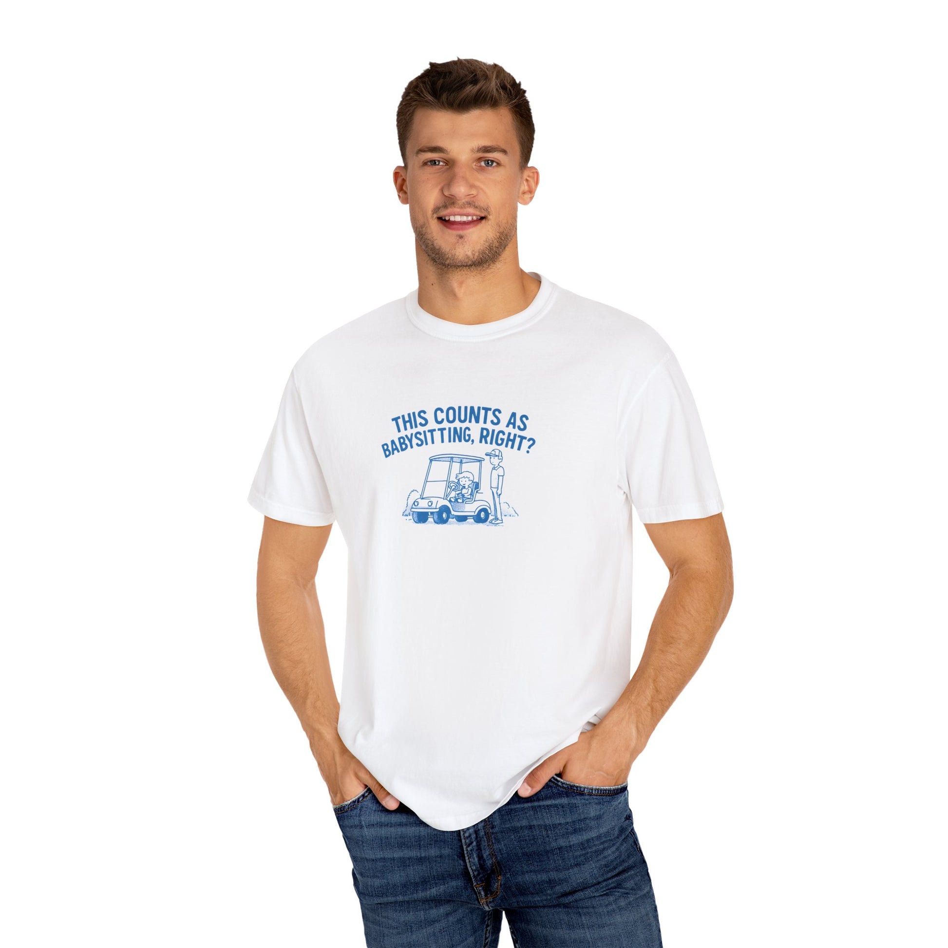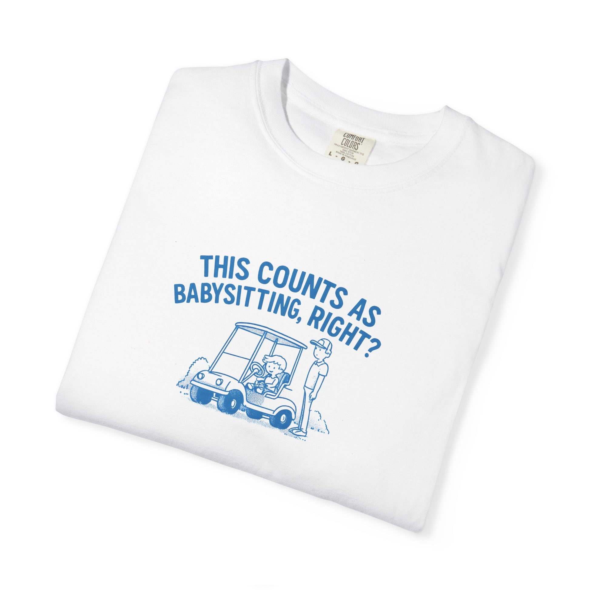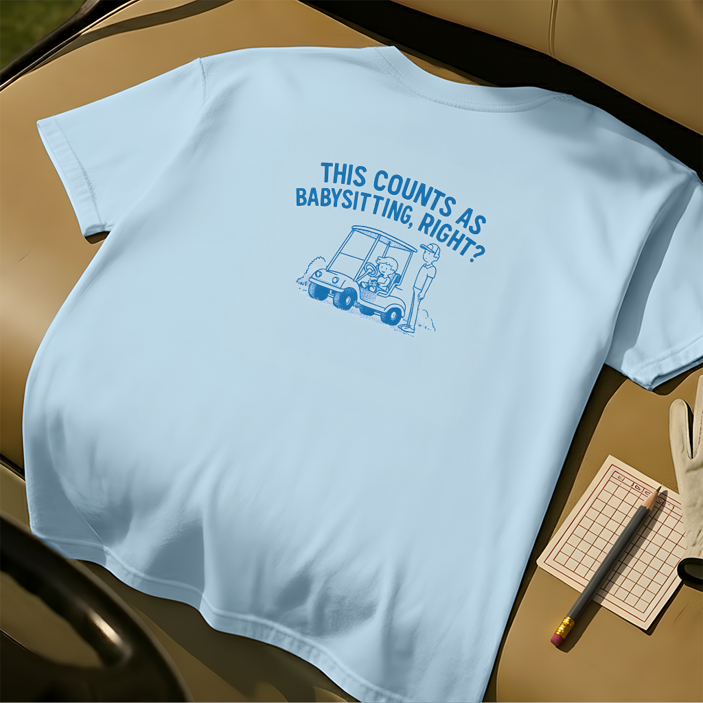 Golf dads everywhere can relate — if the kid’s in the cart, it’s basically babysitting. This fun, vintage-style tee blends humor and parenthood with a simple truth every golfer knows. Perfect for dads who juggle family life and tee times with a wink and a laugh.