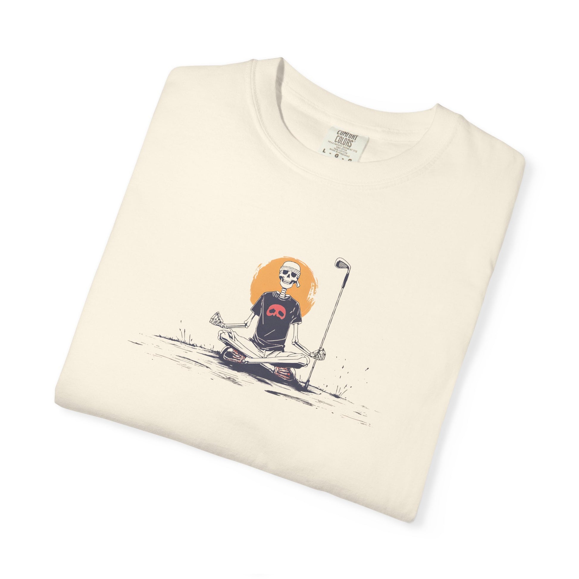 Bring calm to the chaos of the course with our Bone Balance skeleton tee. Featuring a retro-styled skeleton meditating with golf club in hand, this design blends humor, edge, and relaxation for players who know the game is as much mental as it is physical.